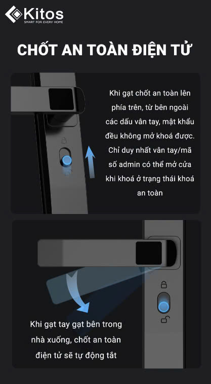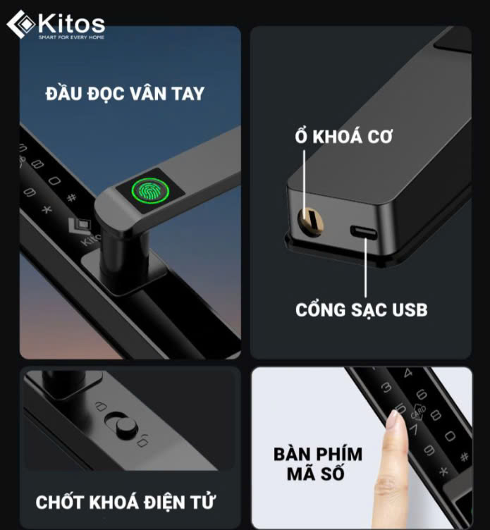 Chức năng : Vân tay, thẻ từ , mã số, chìa cơ, app điện thoại
