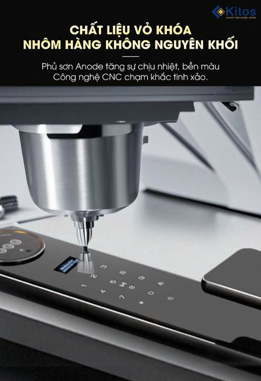 So với các chất liệu hợp kim thông thường, Kitos KT-X8 FACE ID được làm từ chất liệu nhôm hàng không nguyên khối với công nghệ CNC tinh xảo, các chi tiết được chạm khắc sắc nét. Cộng thêm với lớp sơn phủ Anode bên ngoài tăng tính chịu nhiệt giúp cho lớp vỏ khóa trở nên bền bỉ, bền màu theo năm tháng.
