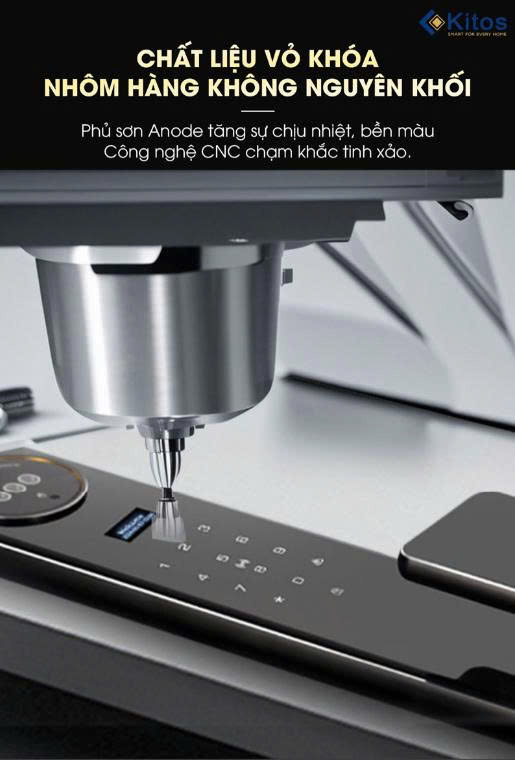 So với các chất liệu hợp kim thông thường, Kitos KT-X8 được làm từ chất liệu nhôm hàng không nguyên khối với công nghệ CNC tinh xảo, các chi tiết được chạm khắc sắc nét. Cộng thêm với lớp sơn phủ Anode bên ngoài tăng tính chịu nhiệt giúp cho lớp vỏ khóa trở nên bền bỉ, bền màu theo năm tháng.