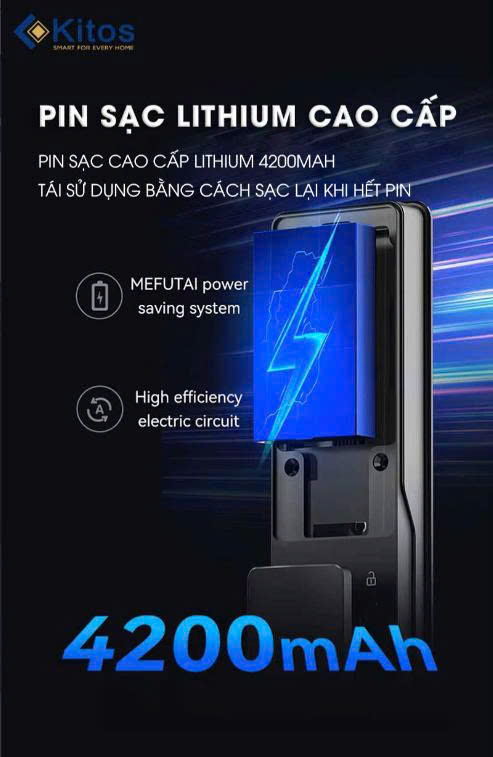 Với dung lượng pin 4200mAh, khóa có thể hoạt động lên đến 6 tháng và có thể tái sử dụng bằng cách sạc lại.