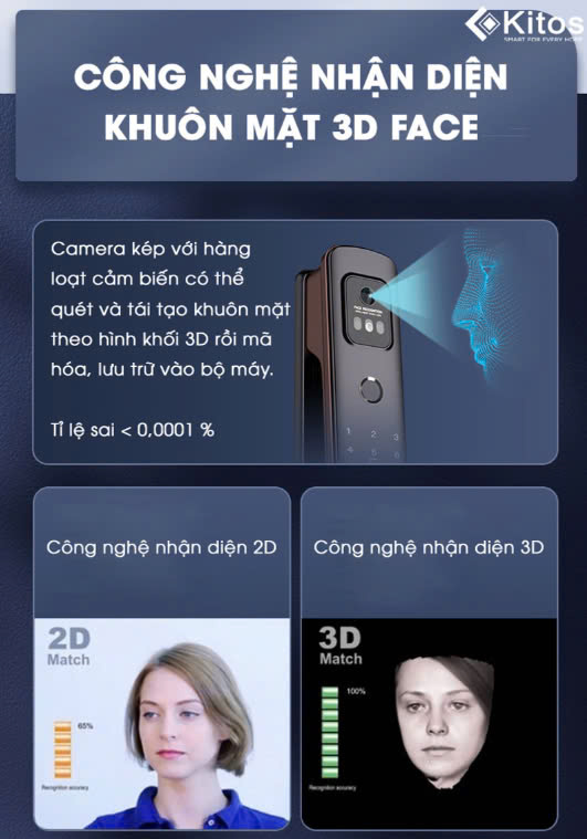 - Công nghệ nhận diện 3D FACE cao cấp nhất bảo mật tuyệt đối