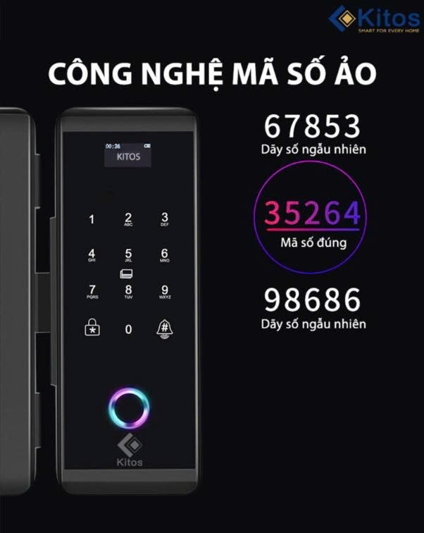 – Bàn phím: bán phím cảm ứng, chức năng mã số ảo thông minh tránh lộ mã lộ mật khẩu. Bề mặt phủ nhám chống bám vân tay.