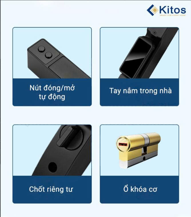 Khác với một số dòng khóa cửa nhôm tay gạt thông thường, khi mở khóa cần đặt vân tay rồi kéo tay nắm xuống để mở. Kitos ALS3 sẽ tự động mở cửa ngay sau khi nhận được tín hiệu từ các chức năng như vân tay , thẻ từ , mã số… điều này cực kỳ tiện lợi khi bạn đang cầm rất nhiều đồ ở trên tay.