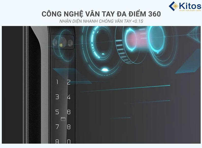 Với công nghệ vân tay FPC tiên tiến nhất hiện nay, việc nhận diện vân tay trên khóa Kitos ALS3 FACE ID chỉ mất 0,1s. Công nghệ FPC xác thực dựa trên ba yếu tố : Nhiệt độ, áp suất, điện dung, điều này ngăn chặn việc làm giả vân tay, giúp bộ khóa được bảo mật tối đa. Ngoài ra, khóa cũng có thể nhận diện đa điểm 360 độ giúp bạn có thể đặt vân tay ở bất kỳ vị trí nào cực kỳ tiện lợi.